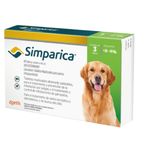 Simparica Comprimido Masticable 20 a 40 Kg – 80 mg (Precio por un comprimido)